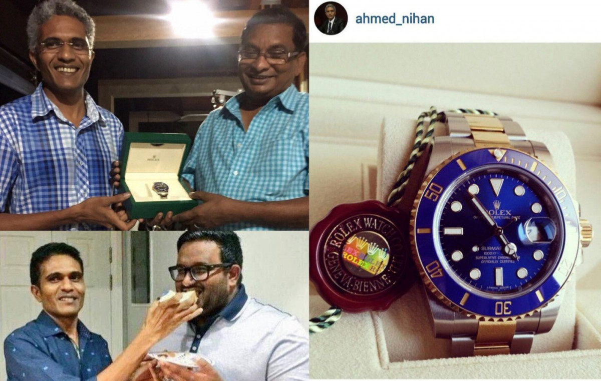 ކުރީގެ ނައިބްރައީސް އަދީބުގެ ފަރާތުން ނިހާނަށް ރޮލެކްސް ގަޑި ދީފައިވަނީ ރައީސް ޔާމީނުގެ ޅިޔަނެއް ކަމަށްވާ މުޙައްމަދު މަނިކު