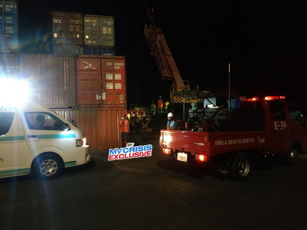އެގޮތުން ޙާދިސާ ހިނގީ ކޮންޓެއިނަރ ތެރޭގައި ހުރި ބިއްލޫރި ޕެލެޓް އަރިއަޅާލައިގެން ވެއްޓުމުގެ ސަބަބުންކަން ފާހަގަކޮށް އެމްއެންޑީއެފުން ބުނީ، ކޮންޓެއިނަރުގެ ބޭރު ކަފާލައިގެން އޭނާ ސަލާމަތް ކުރުމަށްފަހު، ފަރުވާއަށް އައިޖީއެމްއެޗަށް ގެންގޮސްފައިވާ ކަމަށެވެ.