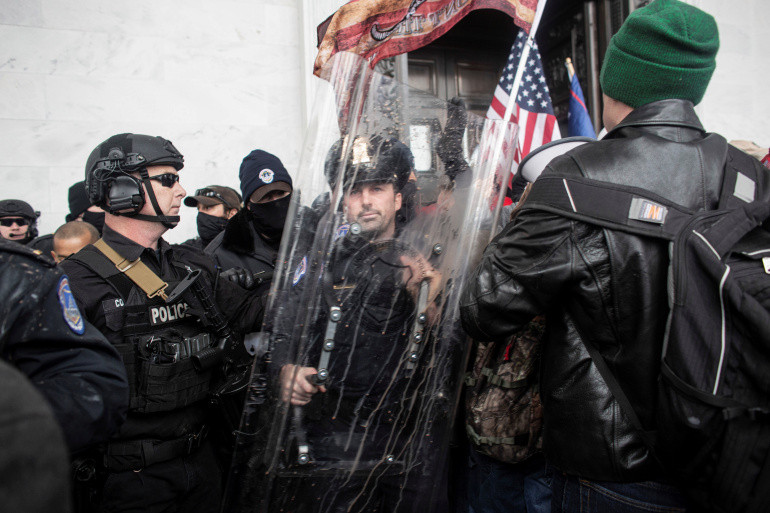 އެމެރިކާގެ ކެޕިޓޮލްގެ ތެރެއަށް ގަދަކަމުން ވަދެގަނެ ހަމަނުޖެހުން ހިންގުމަށް މަސައްކަތްކުރި މީހުންގެ ކިބައިން އެތަން ސަލާމަތްކުރުމުގައި އުޅެނިކޮށް ޒަޚަމްވި ފުލުސް މީހާ މަރުވެއްޖެކަމަށް ކެޕޮޓިލްގެ ފުލުހުން ބުނެފިއެވެ.