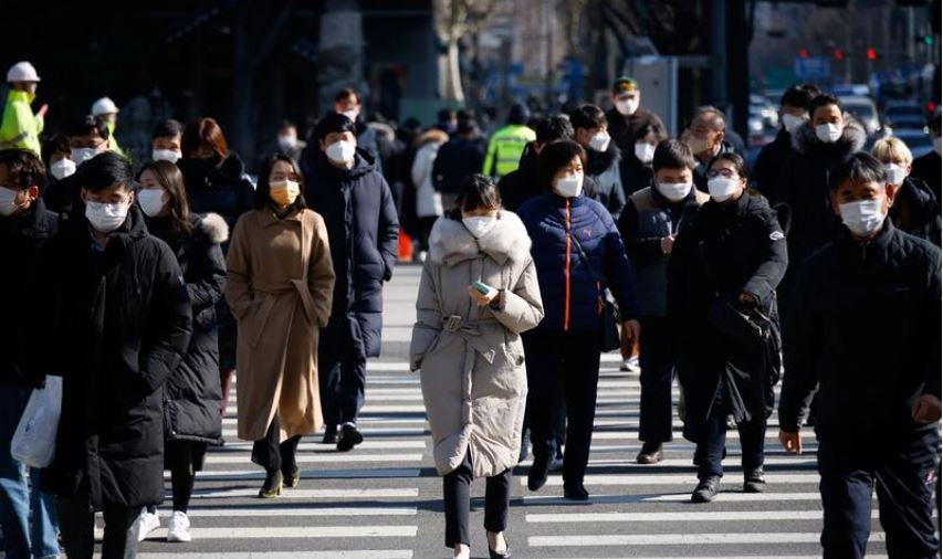 ދެކުނުކޮރެއާގެ ސޯލްގެ މަގުމަތީގައި މީހުން މާސްކު އަޅައިގެން ހިނގާފައިދަނީ