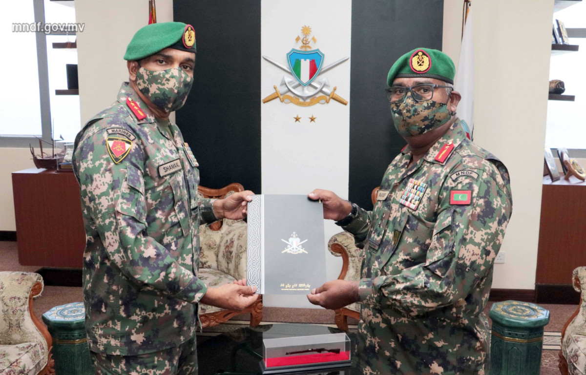 ލިޔުން ހަވާލުކޮށްދެއްވީ ޗީފް އޮފް ޑިފެންސް ފޯސް މޭޖަރ ޖެނެރަލް ޢަބްދުﷲ ޝަމާލް