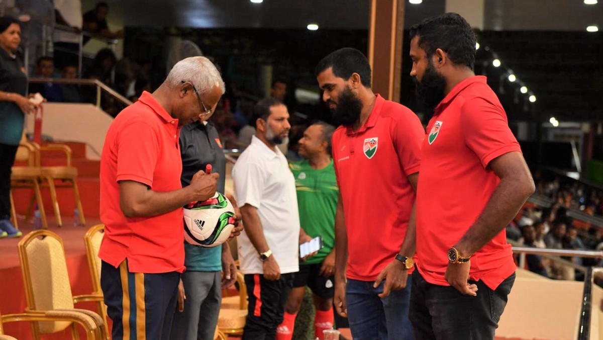 ރައީސް ޞާލިޙާއެކު ގައުމީ ފުޓްބޯޅަ ޓީމުގެ ކުޅުންތެރިން