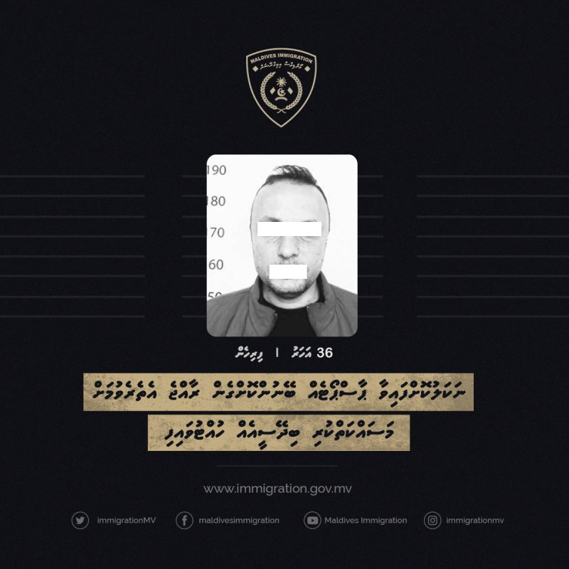 Maldives Immigration revealed that a man had been stopped by Immigration Border Security for attempting to enter the Maldives with a counterfeit passport, and that he was a 36-year-old man of Middle-Eastern origin.