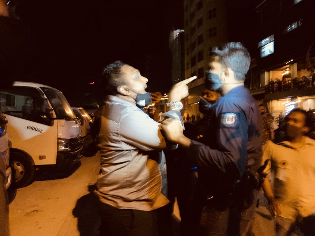 ރާއްޖޭގެ ކޮވިޑް ކޭސްތަކުގެ އަދަދުތައް 100ން މަތީގައި އުޅޭއިރު، މާލޭ ސަރަޙައްދުން ކޮންމެ ދުވަހަކުވެސް ގިނަ ކޭސްތަކެއް ދަނީ ރިޕޯޓު ކުރެވެމުންނެވެ. އެއާއެކު، މާލޭ ސަރަޙައްދުގައި ހަރުކަށި ފިޔަވަޅުތަކެއް އަޅާފައިވާއިރު، އިދިކޮޅުން ބާއްވަމުންދާ އެއްވުންތަކަކީ ސިއްޙީ ކުއްލި ނުރައްކަލުގެ ޙާލަތުގެ ދަށުން އަޅާފައިވާ ފިޔަވަޅުތަކުގެ އިތުރުން، އެއްވެ އުޅުމުގެ ޤާނޫނާވެސް ޚިލާފަށް ކުރިއަށް ގެންދާ ޙަރަކާތްތަކެއް ކަމަށް ފުލުހުންވެސް ބުނެފައިވެއެވެ. އަދި މުޒާހަރާގެ ބައިވެރިން ހައްޔަރު ކުރިއިރު ދިން ޤާނޫނީ އިންޒާރުތަކުގައި މީގެ ކުރިންވެސް ފުލުހުން އެކަން ފާހަގަ ކޮށްފައިވެއެވެ.
