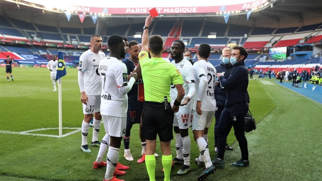 ފްރެންޗް ލީގުގައި ހޮނިހިރު ދުވަހުގެރޭ ލިލް އަތުން ބަލިވެ ތާވަލުގެ ދެވަނައަށް އެންމެ ފަހުގެ ޗެމްޕިއަން ޕީއެސްޖީ ވެއްޓުނުއިރު، ޗުގެ އިތުރު ވަގުތުގައި އެ ޓީމުގެ ނޭމާއަށް ރަތް ކާޑެއް ދައްކައިފިއެވެ.