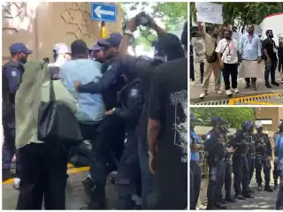 "ފަހު ދުވަސް" ނަމުގައި ނޫސްވެރިން މަޖިލިސް ދޮށުގައި މުޒާހަރާ ކުރަން ފަށައިފި