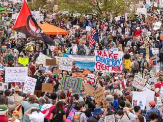 ޓްރަމްޕާއި ދެކޮޅަށް އެތައް ހާސް ބަޔަކު މަގުތަކަށް ނުކުމެއްޖެ