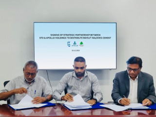 "މޯލްޑިވްސް ސިމެންތި" މާކެޓްކޮށް ޑިސްޓްރިބިއުޓް ކުރުމަށް އެސްޓީއޯ އާއި އެޕޯލޯ ކުންފުނިން އެއްބަސްވުމެއްގައި ސޮއިކޮށްފި