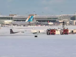 ޓޮރޮންޓޯގެ އެއަރޕޯޓުގައި ޖައްސަން އުޅުނު މަތިންދާބޯޓެއް އެކޮޅުކޮޅުން ޖެހި ނުރައްކާތެރި ހާދިސާ އެއް ހިނގައިފި