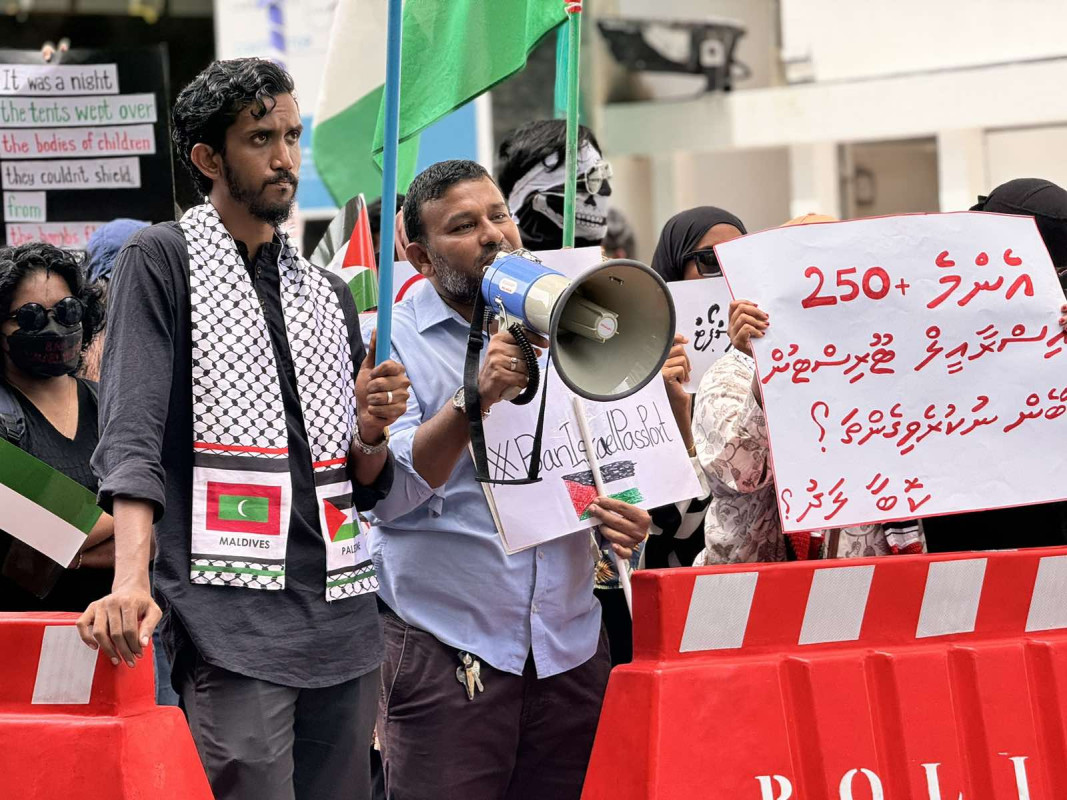 ފަލަސްތީނަށް ތާއީދުކޮށް މާލޭގައި ދަނީ އެއްވުންތައް ބާއްވަމުންނެވެ.