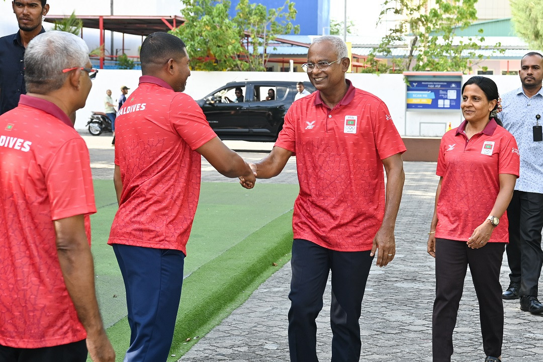 އިންޑިޔާ ކަނޑުގެ ޖަޒީރާ ގައުމުތަކުގެ ކުޅިވަރު މުބާރާތް، އިންޑިއަން އޯޝަން އައިލެންޑް ގޭމްސް (އައިއޯއައިޖީ) 2023ގައި ބައިވެރިވާ ދިވެހިރާއްޖޭގެ ވަފުދާ، ރައީސުލްޖުމްހޫރިއްޔާ އިބްރާހީމް މުހައްމަދު ސާލިހާއި އެމަނިކުފާނުގެ އަނބިކަނބަލުން ފަޒްނާ އަހުމަދު ބައްދަލުކުރައްވައިފިއެވެ. މި ބައްދަލުކުރެއްވުން އޮތީ ސޯޝަލް ސެންޓަރުގައެވެ.