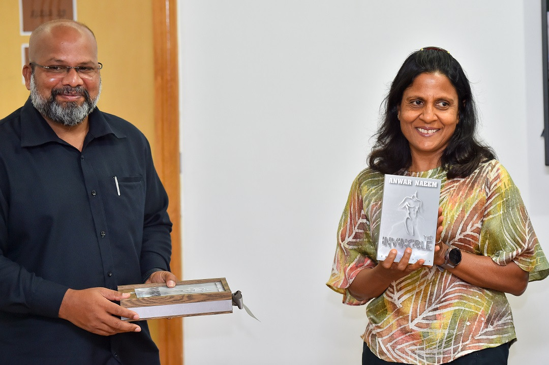 އަންވަރު ނައީމް ލިއުއްވާފައިވާ ޚިޔާލީ ވާހަކައެއް ކަމުގައިވާ "ދަ އިންވިންސިބްލް: ދަ ކޮންފިއުޝަން" ފޮތް، ރައީސުލްޖުމްހޫރިއްޔާގެ އަނބިކަނބަލުން ފަޒްނާ އަހުމަދު ވަނީ ނެރެދެއްވާފައެވެ. މި ފޮތް ނެރެދެއްވުމުގެ ރަސްމިއްޔާތު ބާއްވާފައިވަނީ ބުރާސްފަތި ދުވަހުގެ ހެނދުނު ގައުމީ ކުތުބުޚާނާގައެވެ.