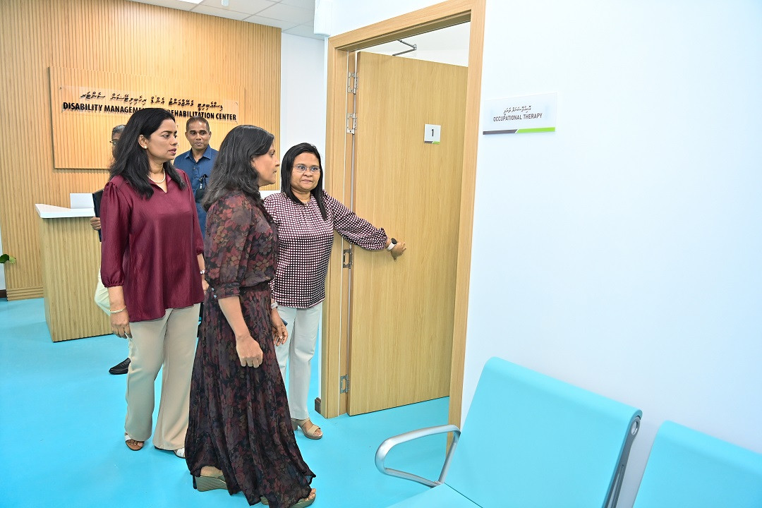 ރައީސުލްޖުމްހޫރިއްޔާގެ އަނބިކަނބަލުން ފަޒްނާ އަހުމަދު، ސަރުކާރުން ހުޅުމާލޭގައި ގާއިމްކުރި ޑިސްއެބިލިޓީ މެނޭޖްމެންޓް އެންޑް ރިހެބިލިޓޭޝަން ސެންޓަރ ހުޅުއްވައިދެއްވައިފިއެވެ. އާދިއްތަ ދުވަހު މި ސެންޓަރު ހުޅުވާފައިވަނީ، މިހާރު އިންފެކްޝަސް ޑިޒީޒް މެނޭޖްމެންޓް ސެންޓަރވެސް ހިނގަމުން އަންނަ، ހުޅުމާލޭ އޮރެންޖް ހިޔާ އިމާރާތުގެ ފުރަތަމަ ފަންގިފިލާގައެވެ.