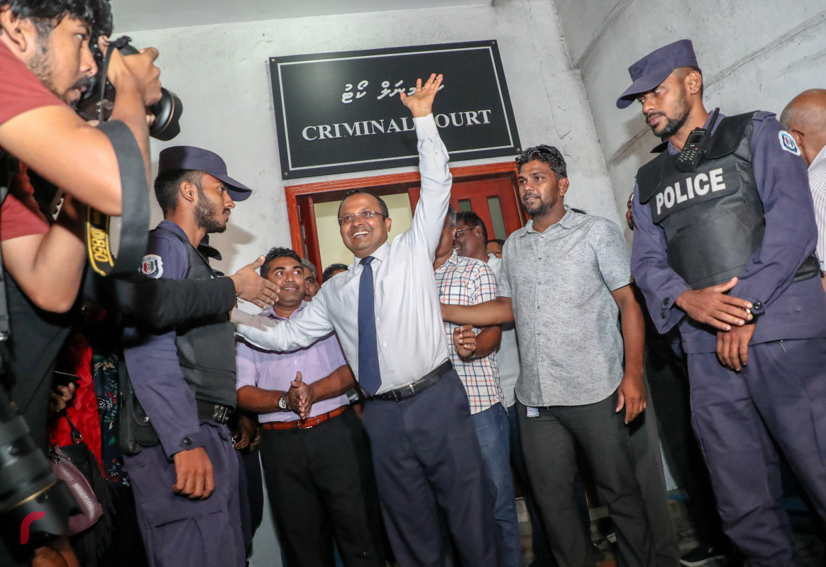 ކްރިމިނަލް ކޯޓުން ސިޔާސީ ހައްޔަރީން ދޫކޮށްލުމަށް ކޯޓުގައި ކުރިއަށްގެންދިޔަ އަޑުއެހުންތަކުގެ ތެރެއިން ،އަޑުއެހުތައް ކުރިއަށްދިޔަ ވަގުތު ކްރިމިނަލް ކޯޓު ސަރަހައްދަށް ގިނަ އަދަދެއްގެ މީހުން ޖަމާވެ ހުރިހާ ސިޔާސީ ހައްޔަރީން ދޫކޮށްލުމަށް ވަނީ ގޮވާލާފައި -- ފޮޓޯތައް: މުހައްމަދު ޝަރުހާން/ ރާއްޖެ އެމްވީ