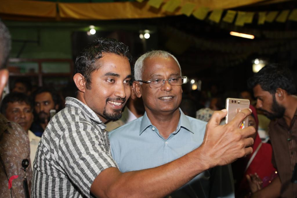 ރިޔާސީ އިންތިޚާބުގައި ގުޅިފައިވާ ޕާޓީތަކުގެ ކެންޑިޑޭޓް އިބްރާހީމް މުހައްމަދު ސޯލިހް އަދި ރަނިންގް މޭޓް ފައިސަލް ނަސީމް ހޯއްދެވި ކާމިޔާބީ ފާހަގަކުރަން މައްޗަންގޯޅި އުތުރު ދާއިރާގެ ރައްޔިތުން ޗާންދަނީ މަގު އިސްކަންދަރު ސްކޫލް ސަރަހައްދުގައި ކުރިއަށްގެންދިޔަ ހަރަކާތުގެ ތެރެއިން. މި ހަރަކާތުގައި ކޯލިޝަންއަށް ސަޕޯޓްކުރާ ގިނަ އަދަދެއްގެ ފަރާތްތަކުން ވަނީ ބައިވެރިވެ ވަޑައިގެންފައި -- ފޮޓޯތައް: މުހައްމަދު ޝަރުހާން / ރާއްޖެ އެމްވީ