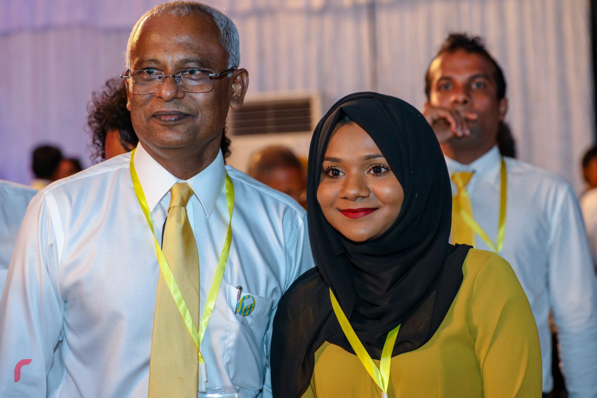 އއ. އުކުޅަސް: ޖޫން 30، 2018- ރާއްޖޭގެ އެންމެ ބޮޑު އިދިކޮޅު ޕާޓީ އެމްޑީޕީގެ ތިންވަނަ ކޮންގްރެސް ކުރިއަށްގެންގޮސް ނިންމާފައިވާއިރު، މި ކޮންގްރެސްގައި އެމްޑީޕީގެ އަސާސީ ގަވާއިދަށް އިސްލާހު ގެނެސް 2018 ވަނަ އަހަރުގެ ރިޔާސީ އިންތިހާބުގެ މެނިފެސްޓޯ އިއުލާންކޮށް ރިޔާސީ އިންތިހާބުގައި ރައީސް ނަޝީދުއަށް ވާދަ ނުކުރެވޭ ފަދަ ހާލަތުގައި ވާދަކުރާނެ ކެނޑިޑޭޓެއް ކަނޑައެޅުން ވަނީ ކުރިއަށްގެންގޮސްފައެވެ. -- ފޮޓޯ: މުހައްމަދު ޝަރުހާން / ރާއްޖެ އެމްވީ