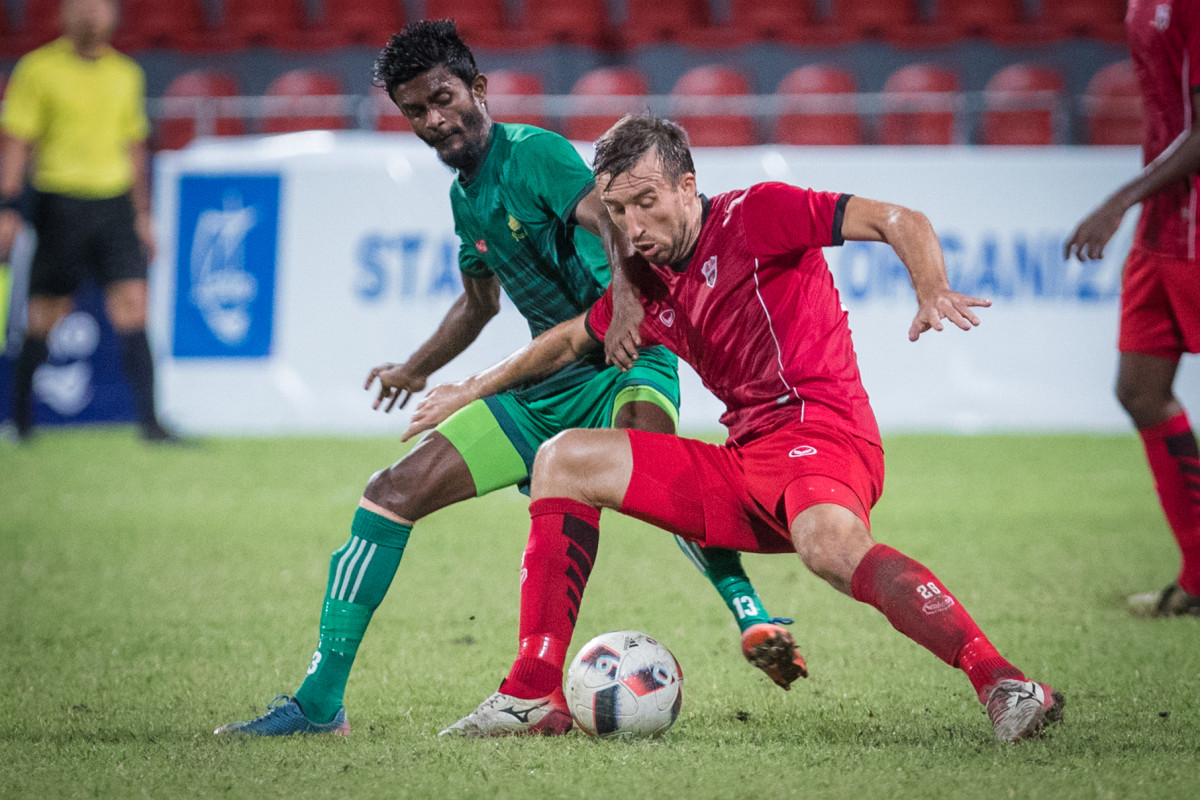 އެސްޓީއޯ މާލޭ ލީގުގައި މާޒިޔާ ސްޕޯޓްސް އެންޑް ރެކްރިއޭޝަން ކްލަބްއާއި ޓީސީ ސްޕޯޓްސް ކްލަބް ބައްދަލު ކުރި މެޗްގެފަހު ވަގުތު ކޮޅުގައި ޖެހި ލަނޑާއިއެކު ޓިސީ އިން ވަނީ މާޒިޔާ އާއި 1-1 އިން އެއްވަރުކޮށްފައި. -- ފޮޓޯ: އިމޭޖަސް އެމްވީ