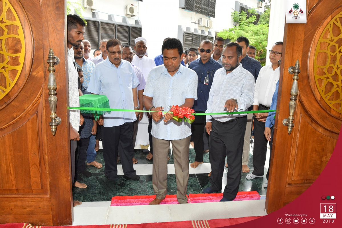 1200 މީހުންގެ ޖާގައިގެ "ޒިޔާރަތް މިސްކިތް" ހުކުރު ނަމާދަށް ހުޅުވުމަށް ކުރިއަށްގެންދިޔަ ރަސްމިއްޔާތުގެ ތެރެއިން. ޒިޔާރަތް މިސްކިތް ހުޅުވައިދެއްވާފައިވަނީ ރައީސުލް ޖުމްހޫރިއްޔާ އަބްދުﷲ ޔާމީން އަބްދުލްގައްޔޫމް -- ފޮޓޯ: ރައީސް އޮފީސް