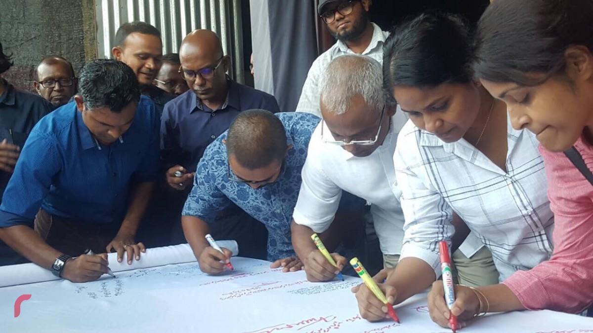 ޝެއިޙް އިމްރާން ޖަލަށްލިތާ 1000 ދުވަސް ވުމާ ގުޅިގެން އެކަމާ ދެކޮޅަށް އަޑުއުފުލުމަށް ގުޅިފައިވާ އިއްތިހާދުން އިންތިޒާމްކޮށްގެން އެމްޑީޕީ ހަރުގެ ސަރަހައްދުގައި ކުރިއަށް ގެންދިޔަ ހަރަކާތުގެ ތެރެއިން