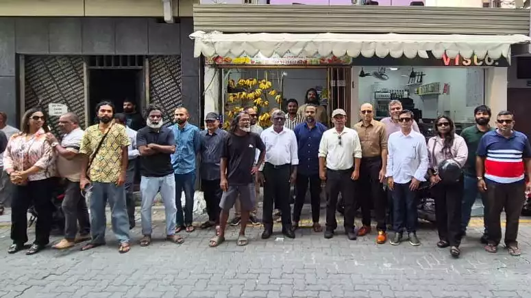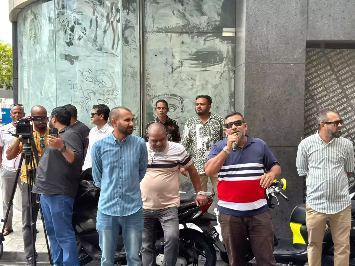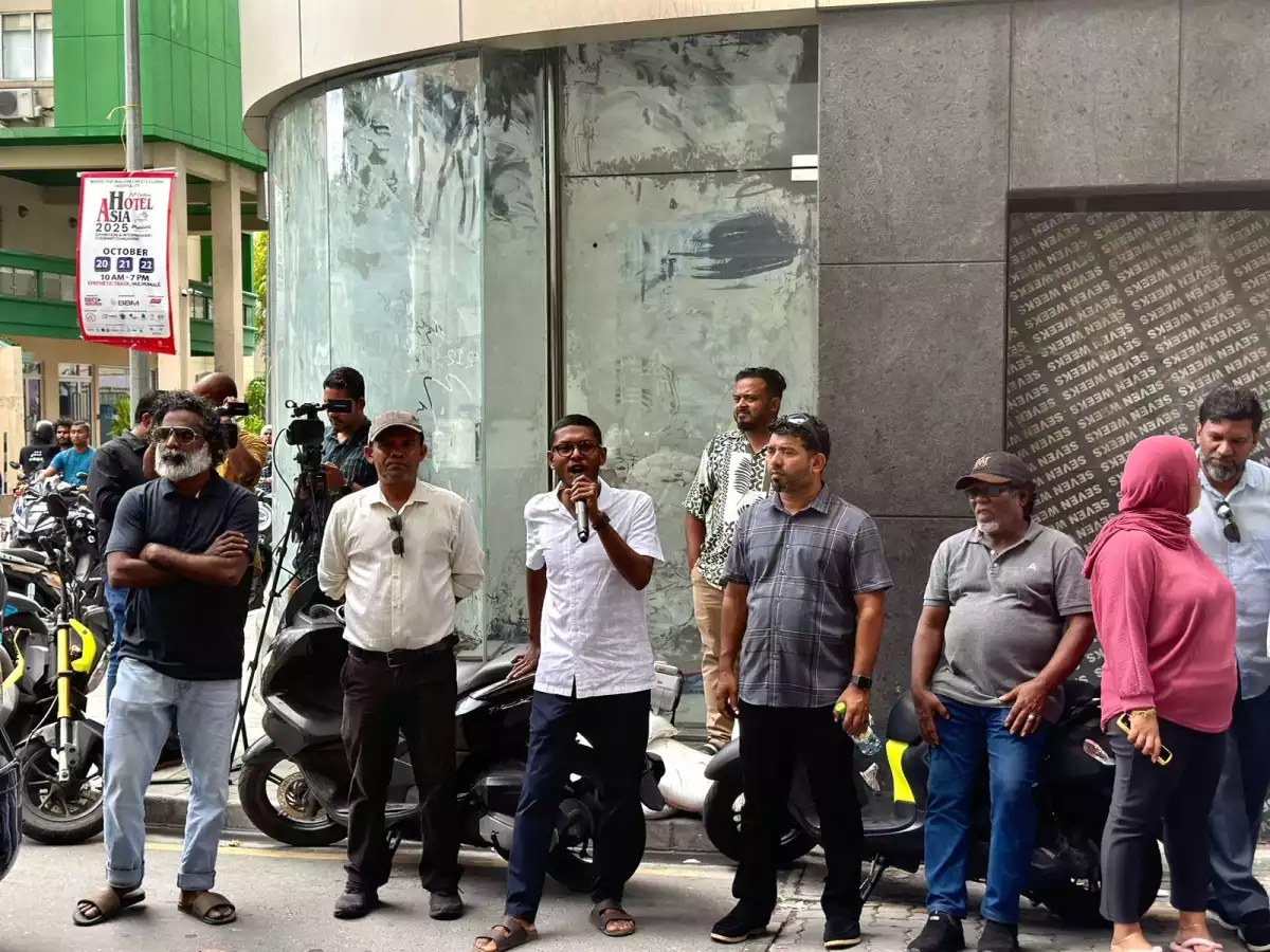 އެމްޑީޕީގެ ގައުމީ މަޖިލިސް މެމްބަރު ހުސައިން ފުލުހަށް ހާޒިރުވި ގަޑީގައި އެތަނަށް އެއްވެ ތިބި މީހުން ވަނީ އަޑު އުފުލާފައި - ފޮޓޯ: އެމްޑީޕީ