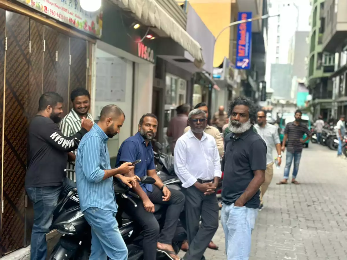 ހުސައިން ފުލުހަށް ހާޒިރުވި ގަޑީގައި އެތަނަށް އެއްވެ ތިބި މީހުން ވަނީ އަޑު އުފުލާފައި - ފޮޓޯ: އެމްޑީޕީ