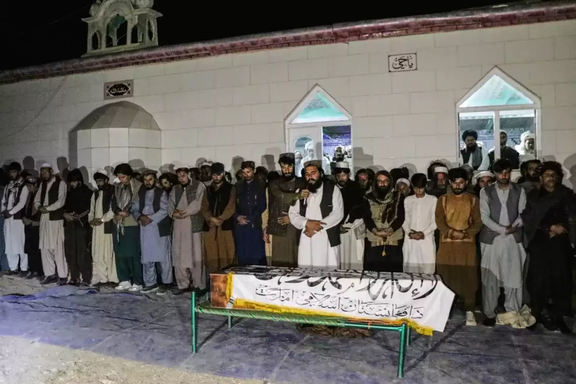 ޕާކިސްތާނާއި އަފްޣާނިސްތާނާ ދެމެދު ހިނގި ސަރަޙައްދީ ޖެހުންތަކުގައި މަރުވި ޕެރަމިލިޓަރީ ސިފައިންގެ މީހެއްގެ ހަށިގަނޑު، ޕާކިސްތާނުގެ ހައިބަރު ޕަހްތުންހްވާ ސޫބާގެ ކޯހަތް ސަރަޙައްދުގައި ބޭއްވުނު ޖަނާޒާގެ ރަސްމިއްޔާތެއްގައި، ސޯގުވެރިންނާއި ރަށުގެ މީހުން އުފުލަނީ - ފޮޓޯ: އޭއެފްޕީ