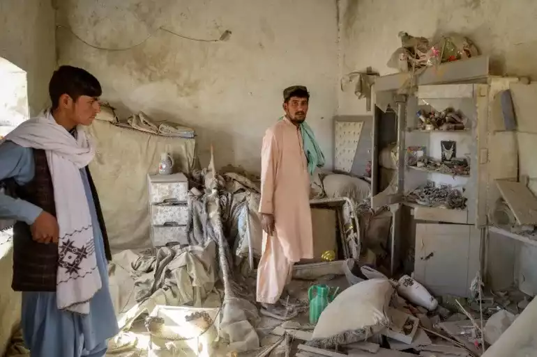ޕާކިސްތާނުގެ ވައިގެ ހަމަލާއަކަށްފަހު، އަފްޣާން ފިރިހެނުން ތަކެއް ގެއްލުން ލިބިފައިވާ ގެއެއް ބަލައި ފާސްކުރަނީ - ފޮޓޯ: އޭއެފްޕީ