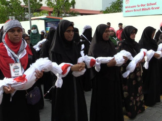 ދިވެހިން ފަލަސްތީނާއެކު ތިބިކަން އަންގައިދިނުމަށް ހުކުރު ދުވަހުގެ ރޭ މާލޭގައި ބޮޑު ރެލީއެއް ބާއްވައިފި