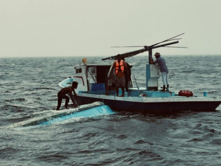 ކޮޅިގަނޑެއްގައި ޖެހި ނޮޅިވަރަމުގެ ޑިންގީއެއް ބަންޑުން ޖަހާލައިފި